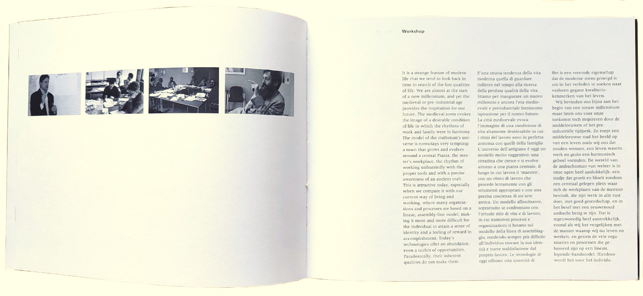 Catalog of the exhibition “Workshop” event, organized by the design centers of Olivetti and Philips to explore the situation and prospects of the office environment and the relationship between man and technology. The emphasized belief is that design should contribute to the exploration of new perspectives on the future of work, aligning with the aspirations and culture of modern humanity. The texts and images in the catalog showcase the outcomes of reflections and projects specifically developed by Michele De Lucchi for Olivetti and Stefano Marzano for Philips, along with their respective teams.