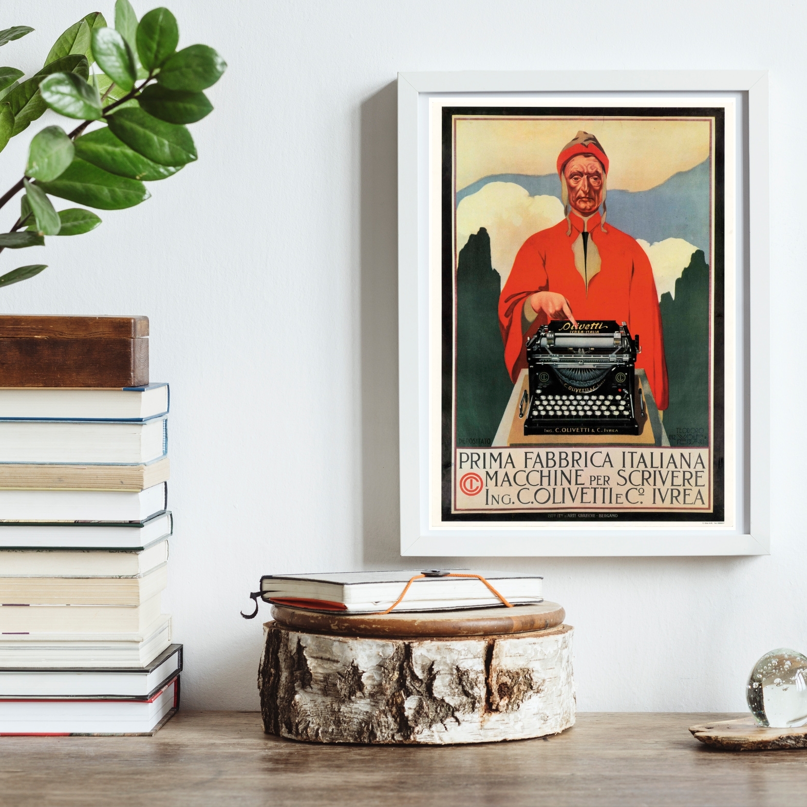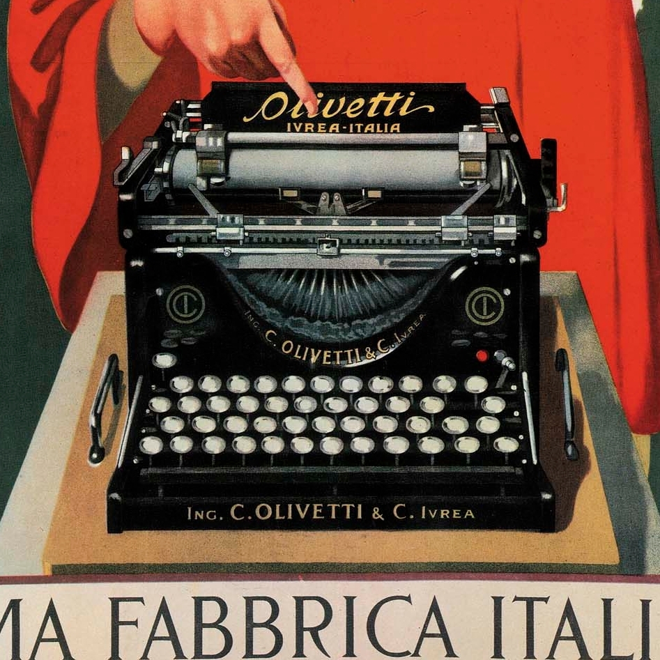 Il primo manifesto realizzato nel 1912 dalla Olivetti, Prima Fabbrica Italiana Macchine per Scrivere, per la prima macchina prodotta.
